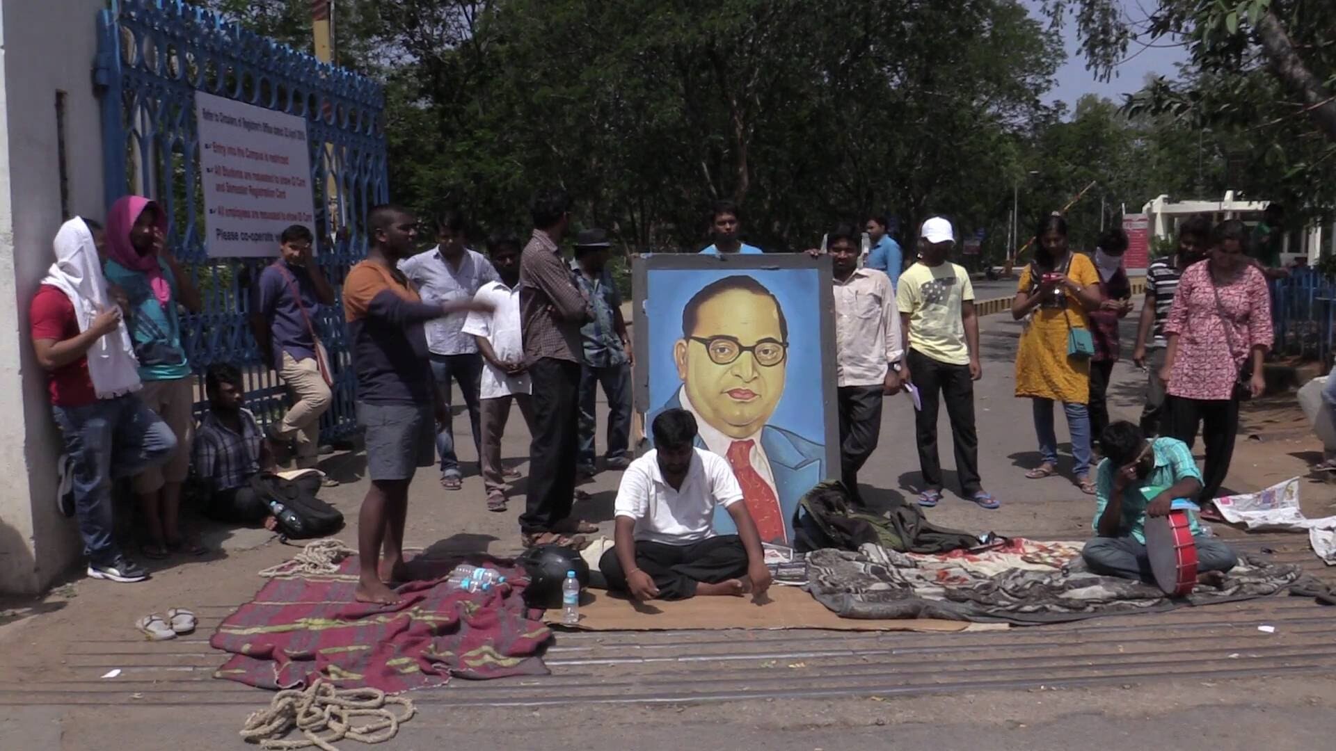 The reclamation of a space by naming it Freedom Square is an attempt at restoring “lost glory,” and is thereby an act of strengthening the existing infrastructure. However, the entry of Velivada into the spaces of a pedagogical enterprise anticipates a reframing of the infrastructural logic itself. Instead of relying on the virtues of a politics of restitution, students from the UoH preferred to install new-universals. They brought back the constitutive other/outside of the empty-universal and instilled them at the heart of the universal. The most visible outcome of such cracks in infrastructural logic is the unavoidable presence of slogans like “Neel Salam, Jai Bhim,”[6] and pictures of B.R. Ambedkar, Jyotirao Phule, Savitribai Phule, and more recently, Fatima Sheikh in any anti-authoritarian mobilizations today.[7] These are the cracks through which a new pedagogical intent has entered into the pristine confines of academia, both in terms of curricular interventions as well as redistribution of lived experiences.