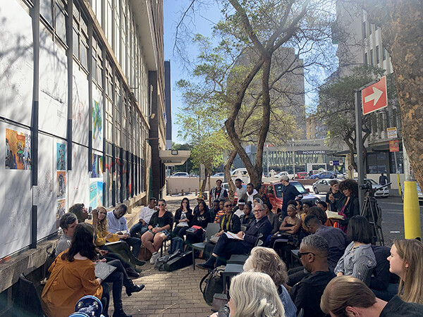 Dr. Huda Tayob’s History & Theory Colloquium at the GSA, held in the street, 2019. Photo: Counterspace.